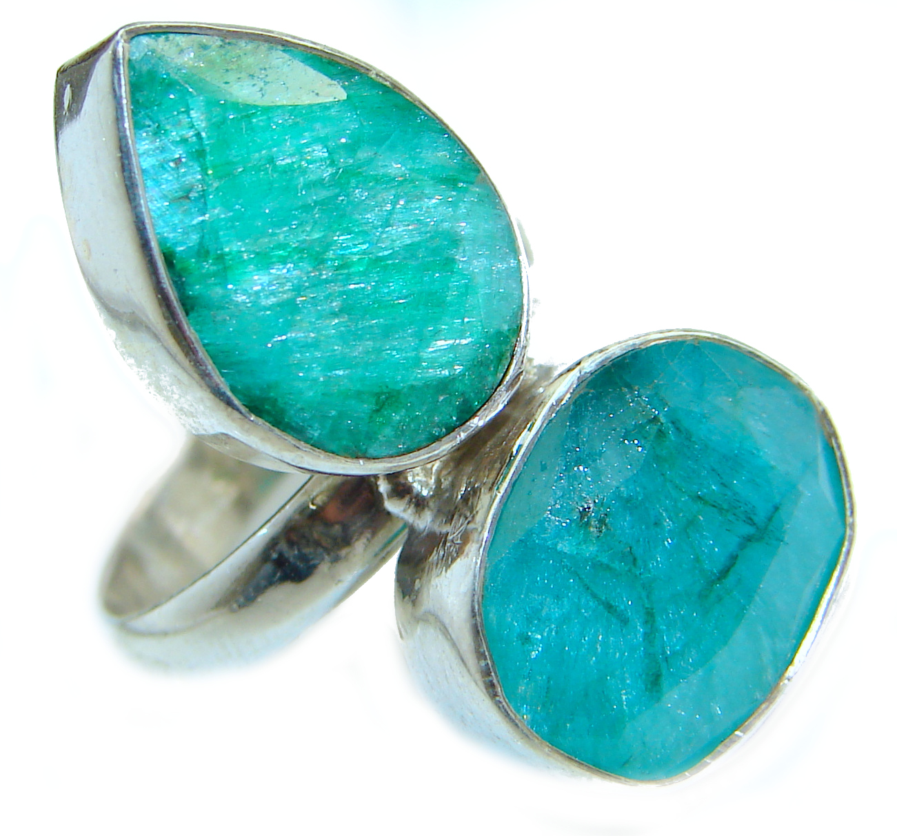 - Outstanding Green Faceted Emerald Sterling Silver Bracelet