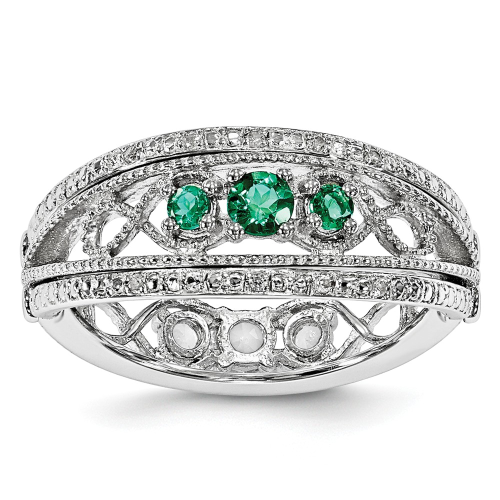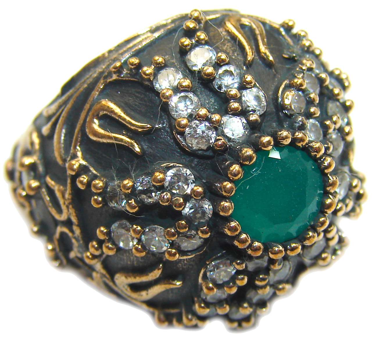- Victorian Style created Emerald & White Topaz Copper over Sterling Silver ring; s. 7 3/4