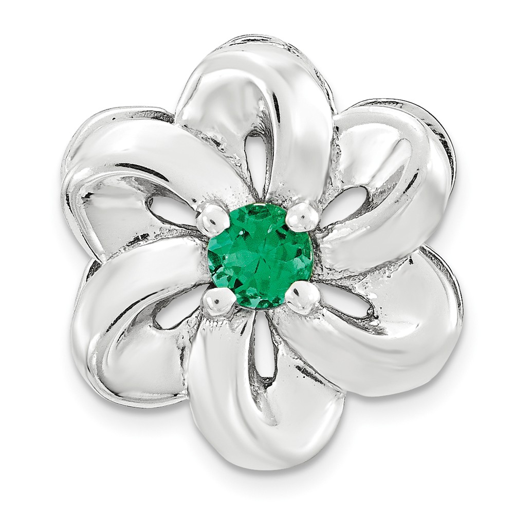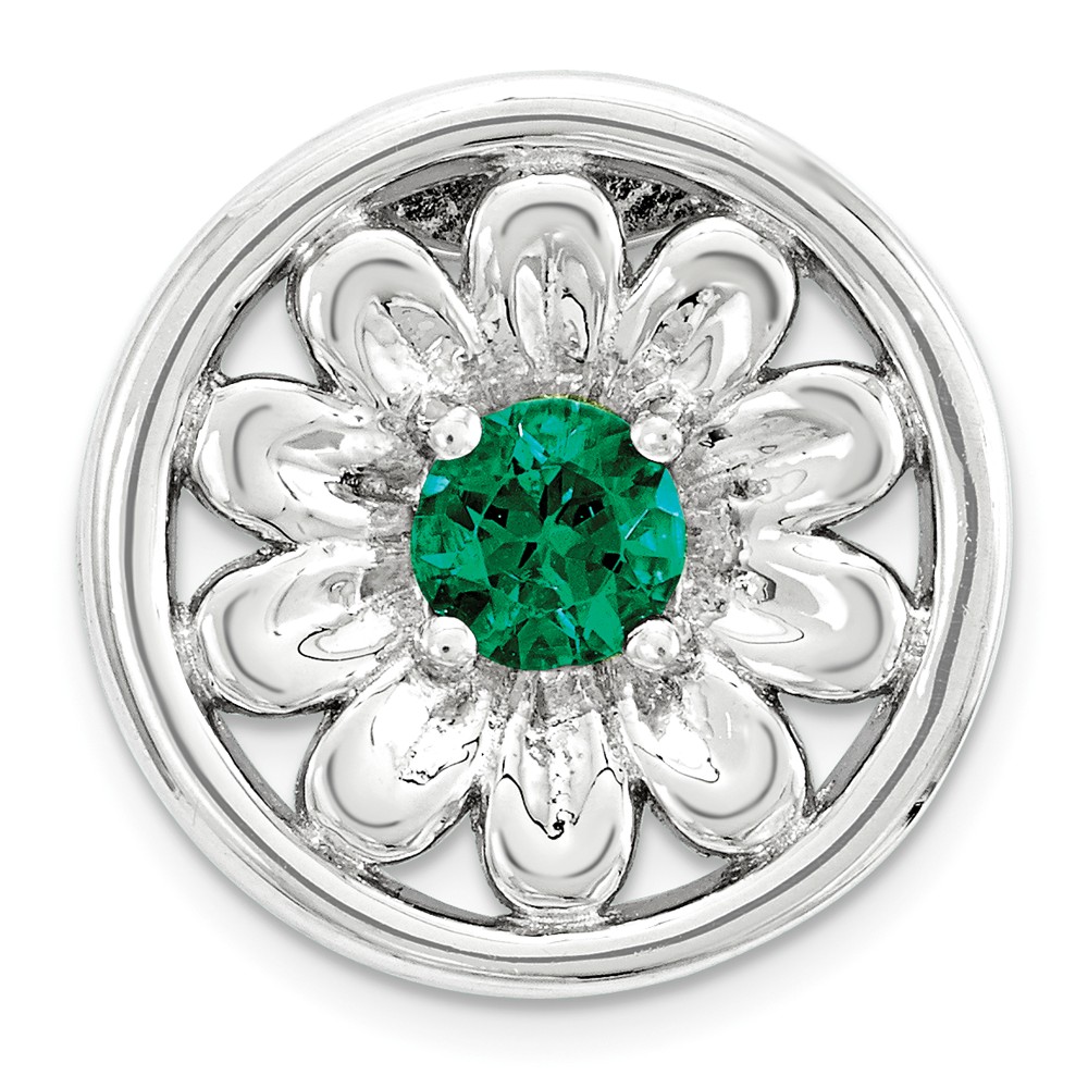 - Sterling Silver & Created Emerald Stackable Small Flower Slide, 12mm Necklace – 24 Inch