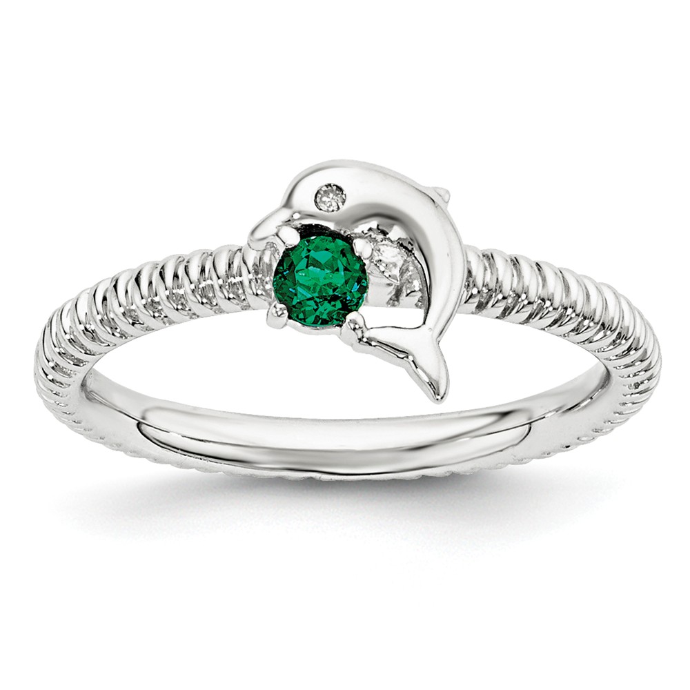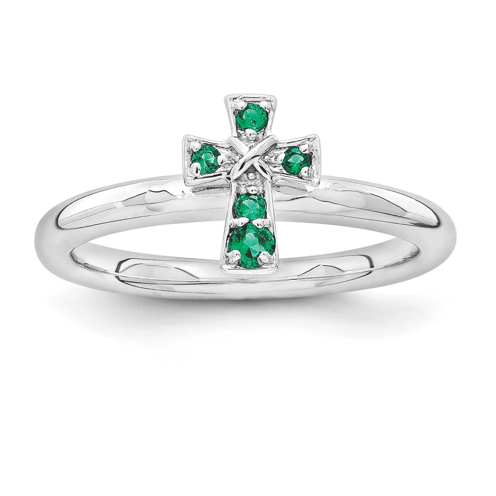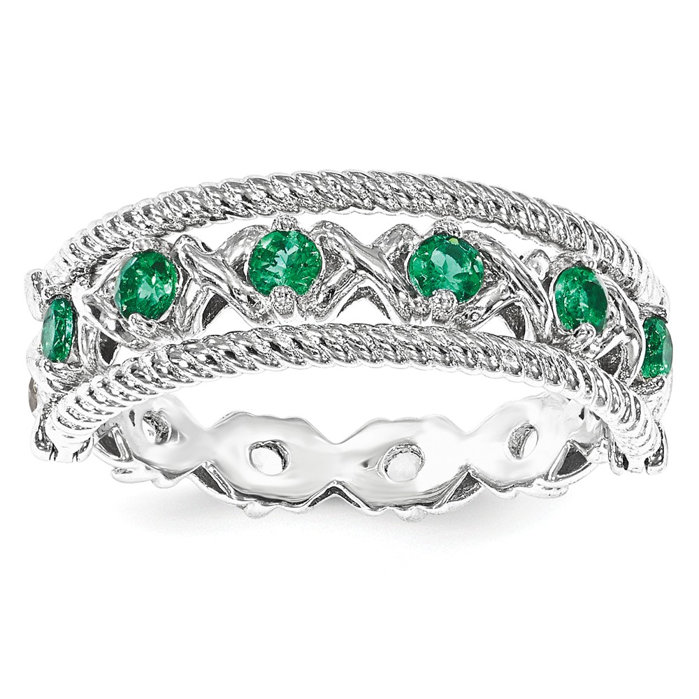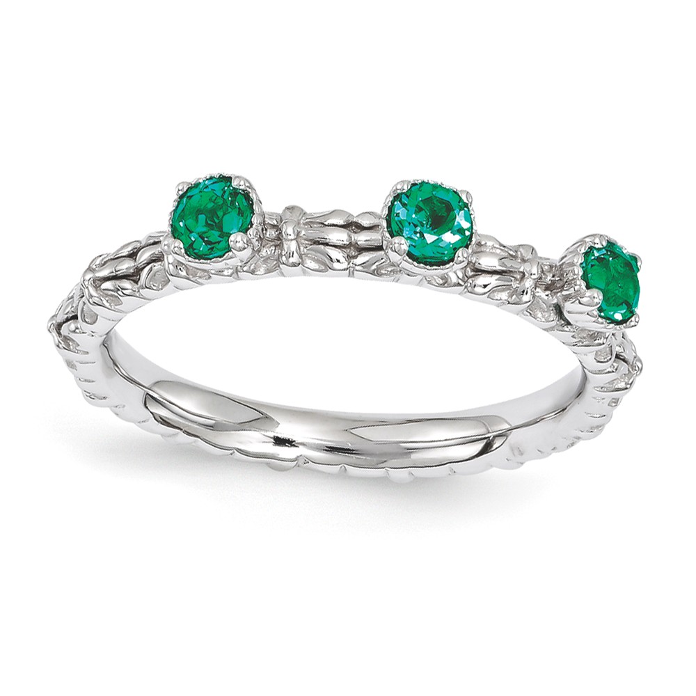 - Sterling Silver and Created Emerald Stackable Small Flower Slide, 12mm Necklace – 24 Inch